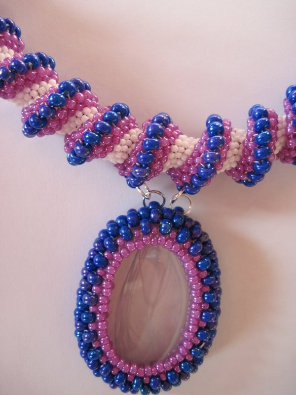 Náhrdelník vznikal na podzim, když všichni okolo mne sbírali hrozny. A já se doma válela s těhu bříškem. Je to mé vlastně všechno poprvé: spirála i obšívání šutru. To připevnění není ono, vím. Do příště na tom zapracuju