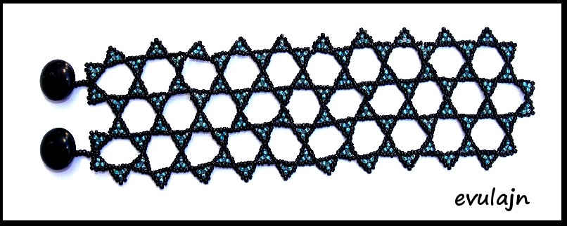 Návod jsem našla v časopise Beadwork. Šila jsem pomocí Toho, které my před dokončením došlo, tak jsem ješte rychle valila do korálkového obchodu.