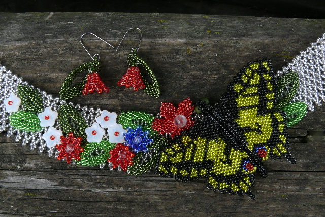 motýl je šitý peyotem.Fotku na krku bohužel nemám,pokusím se pořídit a v dohledné době přidat