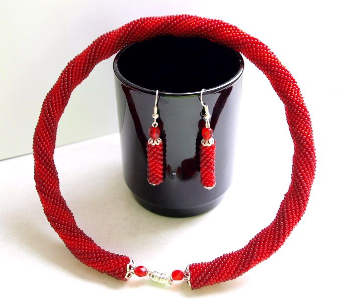 jj je to tak, náhrdelník je z 12 sloupků, a naušnice jenom ze šesti. Je to schválně, protože když jsem zkusila udělat dvanáctikorálky, takhle krátké, tak to bylo širší než vyšší :-)