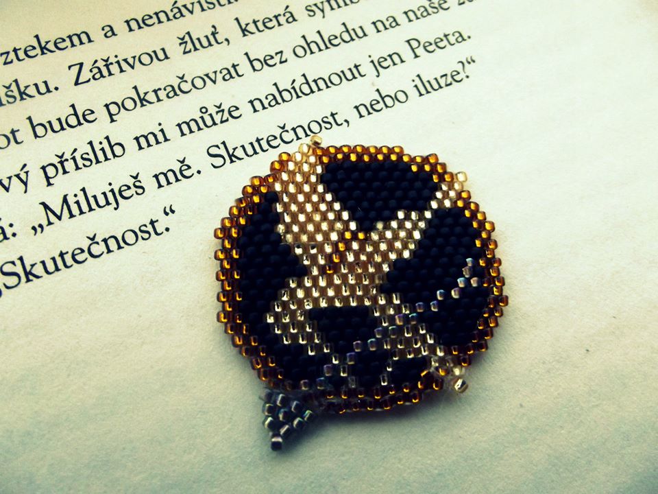 Jelikož jsem velký fanoušek Hunger Games, tak jsem se rozhodla že si brož s reprodrozdem, kterou má Katniss ve filmu nekoupím, ale vyrobím z korálek. Takže tady je výsledek, snad se bude líbit.