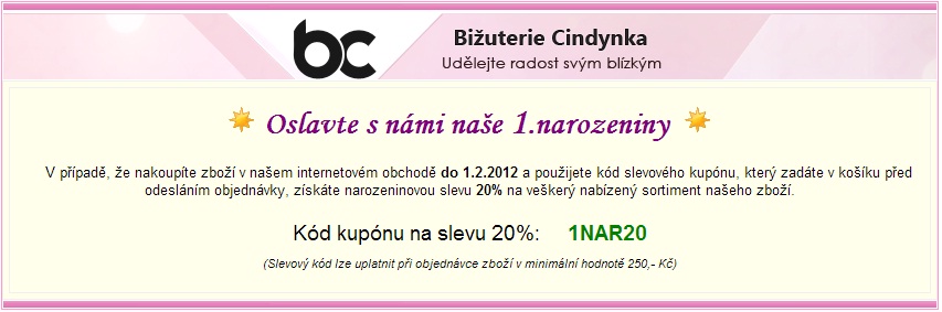 Narozeninový kupón na slevu 20% na veškerý sortiment