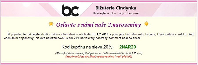 Sleva platí do 17.02.2014, kód slevového kupónu 3NAR20. Více informací najdete na http://www.cindynka.cz