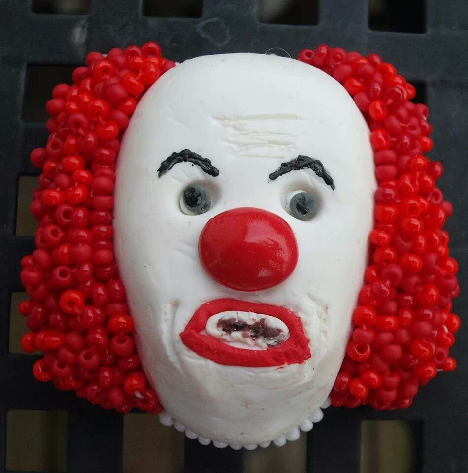 Vytvor do Temy mesiaca, ksicht je vlastnej vyroby z fima, podlepeny filcom a obsity preciosou v troch odtienoch cervenej farby plus bielou.
