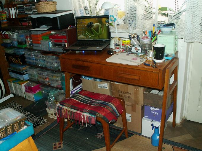 Tak se přidám i já, mám pracovní koutek v ložnici, kterou už několik let mám pro sebe celou ;) a tak zde vládnou korálky a moje černá kníračka.