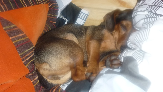 Tak toto je můj hafánek, jmenuje se Betyna a je to taková jezevčice s pražským krisaříkem:D Občas trošku vyčuráná, a v hlavě jí běhá buď jídlo nebo otazník :?: *rofl1*