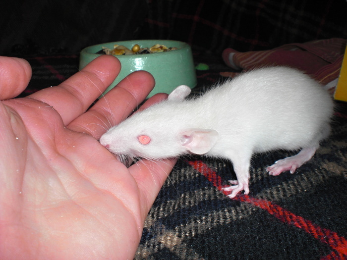 Prakticky od mého narození jsme měli doma hafany. Hlavně ta starší nesnesla nikoho jiného než svojí dceru, ale s mojí první potkankou se neuvěřitelně skamarádila, dokonce vedle spolu i spávali na pelechu. Nikita měla prakticky pořád otevřená dvířka od klece, mohla šmejdit kde chtěla a nikdy jí neublížila... Jen naši kocouři s ní měli trošku problém, ale ten si vyřešila sama, když jim ukázala zač je toho loketOd té doby se k kocouři nepřibližovali.
