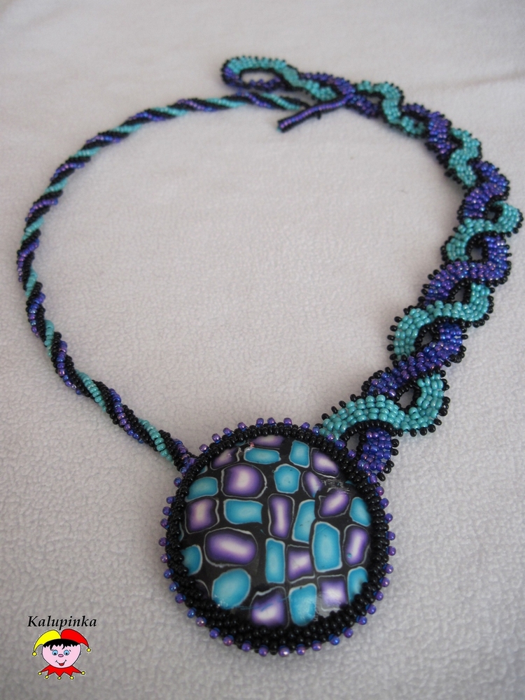 Mou inspirací byla Gaia, bohyně země a Země sama. Chtěla jsem, aby náhrdelník působil těžce a zemitě, protože tak si Gaiu představuju - žádnou éterickou bytost ověnčenou lístečky, poupátky a kvítečky, ale silnou matku, podobnou pravěkým venuším - proto ten název. Takže je to spíš půda s takovým tím nevzhledným plazivým porostem, měděné fimošony (vlastní výroby) a lávové korálky symbolizují ty anorganické součásti země.