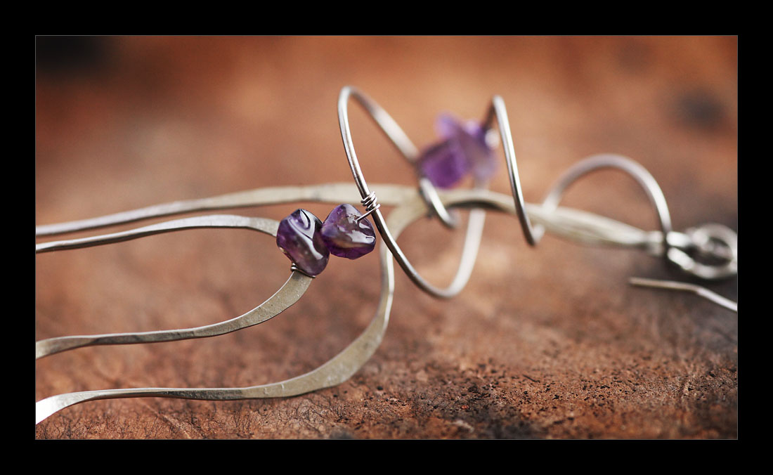 Co se týče techniky, tak pod pojmem Tepaná krajka není autorizováno bušení do drátů ;) , ale intuitivní způsob výroby (což samozřejmě není zřejmé z fotek), který ale umožňuje výrobu nevšedních šperků třeba lidem, kteří nejsou od přírody zruční. Ti se mohou hned první den naučit vyrábět šperky, které jsou tepané a zároveň trojrozměrné. (To je asi ta největší optická změna oproti placatým tepaným hádkům a spirálkám, které známe z trhů.)